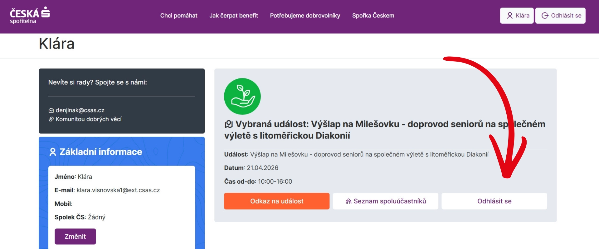 Jestliže si aktivitu plánujete sami a na portále jste se neregistrovali, obratem dejte vědět organizaci, že nedorazíte a zrušte volno v aplikaci Emma.